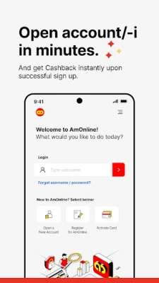 AmOnline ialah aplikasi perbankan mudah alih yang komprehensif untuk mengurus kewangan anda dengan mudah dan selamat. Nikmati ciri-ciri seperti Semak Baki Pantas, DuitNow, pembayaran bil dan permohonan produk baharu, semuanya di satu tempat.