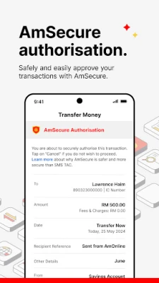 Keselamatan adalah keutamaan kami. Dengan ciri AmSecure dan Pengikatan Peranti, setiap transaksi kewangan anda memerlukan kelulusan dari peranti tunggal anda, memastikan tiada akses tanpa izin. Tempoh Bertenang selama 12 jam akan diaktifkan apabila log masuk pertama kali dari peranti baharu, memberikan lapisan perlindungan tambahan. Sekiranya anda mengesyaki sebarang aktiviti penipuan, gunakan 'Kill Switch' untuk serta-merta menggantung akses AmOnline dan kad AmBank anda, demi melindungi aset anda dengan serta-merta. Percayai AmOnline untuk perbankan yang selamat dan tanpa bimbang.
