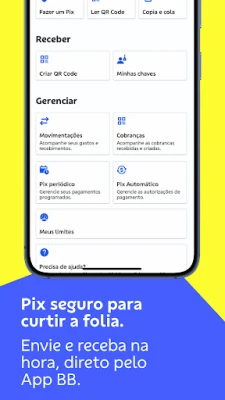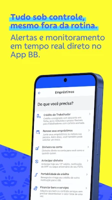 App BB melangkaui transaksi asas dengan menyediakan alat pengurusan kewangan yang pintar dan menyeluruh. Jejaki perbelanjaan, pantau matlamat, dan uruskan bajet anda secara masa nyata dengan ciri "Minhas Finanças". Rancang simpanan masa depan anda dengan "Cofrinho BB", membina tabungan untuk impian anda dengan mudah. Selain itu, teroka pelbagai pilihan pelaburan seperti dana, CDB, LCI, LCA, Tesouro Direto, dan saham, semuanya tersedia dengan nasihat pakar untuk membantu anda mengembangkan aset. Perlukan sokongan kewangan? App BB membolehkan anda menyemak, memohon, dan menguruskan pinjaman peribadi, pinjaman konsinyasi, dan pembiayaan dengan mudah.
