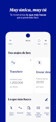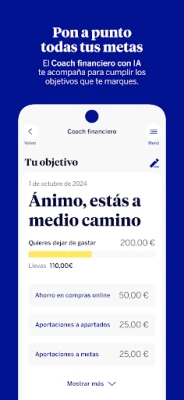Komitmen BBVA terhadap kesejahteraan kewangan anda kini diperkukuh dengan Coach Kewangan baharu. Dengan hampir sedekad pengalaman dalam membantu anda, Coach ini menawarkan diagnosis terperinci tentang kapasiti simpanan bulanan anda, memberikan anda pemahaman yang jelas tentang kedudukan ekonomi semasa anda. Berdasarkan analisis AI, ia kemudiannya merangka pelan peribadi untuk meningkatkan tabiat kewangan anda, membantu anda mengurangkan perbelanjaan yang tidak perlu, dan membina simpanan yang lebih kukuh. Saksikan kemajuan anda setiap bulan, sesuaikan matlamat, dan raikan kejayaan anda! Untuk ketenangan fikiran tambahan, aktifkan Mod Sulit pintar untuk menyembunyikan baki dan pergerakan secara automatik. Serta, Blue, pembantu maya berkuasa AI kami, sentiasa bersedia untuk menjawab pertanyaan anda dengan lebih cekap. Anda juga boleh menghubungkan semua akaun bank anda dalam satu aplikasi yang mudah, termasuk pembayaran Bizum tanpa kos tambahan.