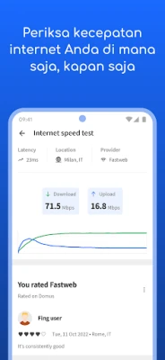 Aplikasi **Fing** menawarkan set utiliti percuma yang komprehensif untuk memastikan anda sentiasa maklum dan terlindung. Lakukan ujian kelajuan internet dan Wi-Fi yang tepat, menganalisis latensi, serta kelajuan muat naik dan muat turun. Dengan pengimbas rangkaian Wi-Fi & LAN kami yang canggih, anda boleh mengesan dan mengenal pasti semua peranti yang bersambung ke mana-mana rangkaian, lengkap dengan alamat IP, MAC, nama, model, dan vendor. Deteksi penceroboh Wi-Fi secara masa nyata, manakala alat diagnostik lanjutan seperti imbasan port, ping, dan pencarian DNS memberikan pandangan mendalam. Terima peringatan keselamatan rangkaian dan peranti terus ke telefon atau e-mel anda, memastikan anda sentiasa selangkah di hadapan ancancam.