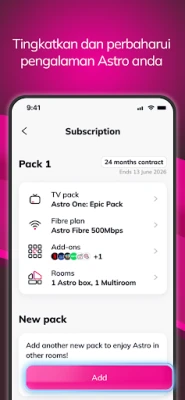 Permudah urusan akaun Astro anda. Bayar bil, tebus ganjaran eksklusif yang menarik, dan dapatkan sokongan pelanggan segera, semuanya dalam satu platform mudah alih. My Astro menjanjikan pengalaman tanpa masalah untuk anda.