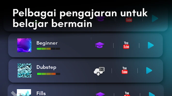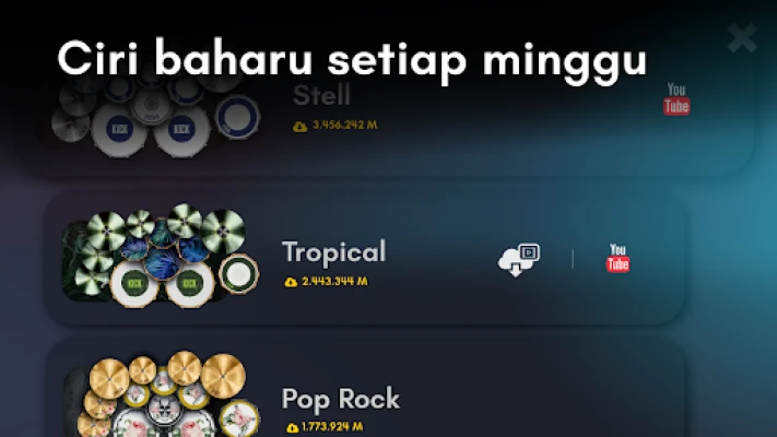 Real Drum membuka gerbang kepada pembelajaran dram yang menyeronokkan dan efektif. Dengan koleksi lebih dari 100 pelajaran video yang komprehensif, anda boleh menguasai asas dan teknik lanjutan, manakala pelbagai gelung muzik sedia ada menawarkan peluang untuk berlatih bersama seperti seorang profesional. Daya kreativiti anda akan melonjak dengan keupayaan penyesuaian kit dram sepenuhnya. Pilih dari pelbagai jenis dram, simbal, dan instrumen perkusi lain, atur saiz dan kedudukan mengikut citarasa anda, malah muat naik imej dan bunyi tersendiri untuk mencipta set dram peribadi yang tiada tandingan. Pengalaman dram 3D yang realistik menambah dimensi baharu kepada sesi latihan anda.