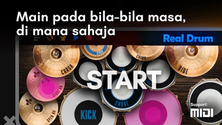 Pernah mengimpikan untuk menguasai irama dram yang memukau, namun terhalang oleh kekangan ruang, kos, atau bunyi bising? Real Drum hadir sebagai penyelesaian revolusioner, membebaskan potensi pemuzik dalam diri anda tanpa memerlukan sebarang perkakasan fizikal. Aplikasi inovatif dari Kolb Apps ini mengubah peranti mudah alih atau tablet anda menjadi studio dram peribadi yang lengkap, membolehkan anda berlatih dan bermain di mana sahaja, pada bila-bila masa, dengan kualiti bunyi studio yang menakjubkan. Lupakan keperluan set dram tradisional; dengan Real Drum, dunia perkusi berada di hujung jari anda.