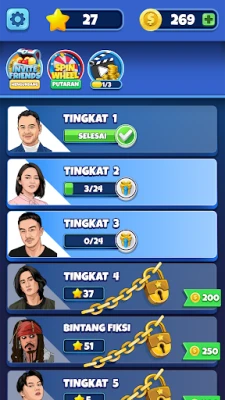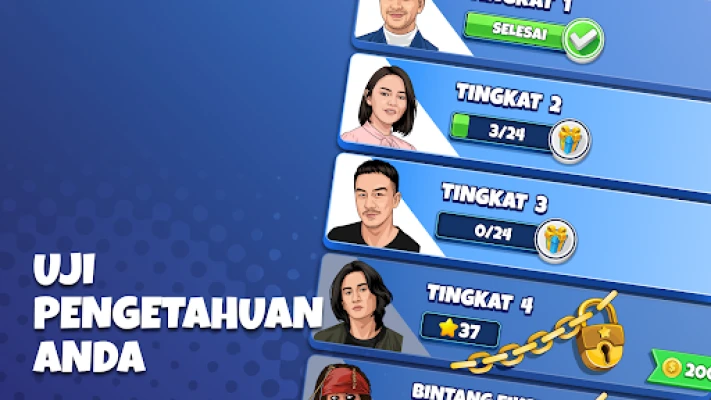 Selami pengalaman visual yang menawan dengan koleksi lebih 5000 gambar selebriti berkualiti tinggi yang dijamin mencabar tetapi tidak mustahil untuk diteka. Mekanisme permainan "Siapa dia? Tebak Selebriti!" sangat intuitif: hanya ketuk pada pilihan jawapan yang tepat untuk maju ke peringkat seterusnya. Apabila anda memerlukan sedikit bantuan, pelbagai petunjuk sedia membantu anda meneruskan permainan, dengan koin dalam permainan boleh digunakan untuk membuka kunci tahap khas atau mendapatkan nyawa tambahan. Tingkatkan pengetahuan anda dari peringkat pemula hingga pakar, sambil menjejaki kemajuan terperinci anda dan membandingkannya dengan rakan-rakan. Jangan lepaskan peluang untuk memutar Roda Keberuntungan Harian bagi mendapatkan ganjaran istimewa setiap hari.