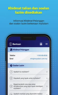 Kami komited untuk meluaskan jaringan perlindungan. Bagi individu dalam golongan M40 yang layak, mySalam menawarkan kemudahan pendaftaran untuk meluaskan liputan perlindungan anda. Setiap aspek direka untuk memberi sokongan yang optimum. Sekiranya anda memerlukan bantuan lanjut, maklumat khidmat pelanggan mySalam sedia untuk dihubungi, memastikan bantuan sentiasa di sisi anda. Dengan mySalam, pengurusan perlindungan anda menjadi lebih mudah, lebih telus, dan lebih berkuasa.