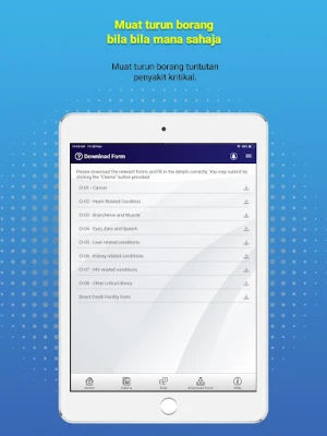 Akses akaun peribadi anda dengan mudah untuk memantau status tuntutan sedia ada atau untuk memulakan permohonan tuntutan baharu dengan proses yang diperkemas. Tidak perlu risau tentang maklumat yang tertinggal, kerana anda akan sentiasa menerima makluman masa nyata tentang kemajuan tuntutan anda. Selain itu, mySalam menyediakan akses terus kepada borang tuntutan penyakit kritikal yang penting, membolehkan anda mendapatkannya bila-bila masa anda memerlukannya. Rujuk bahagian Soalan Lazim (FAQ) kami untuk jawapan segera kepada pertanyaan lazim, memastikan anda sentiasa dimaklumkan sepenuhnya.